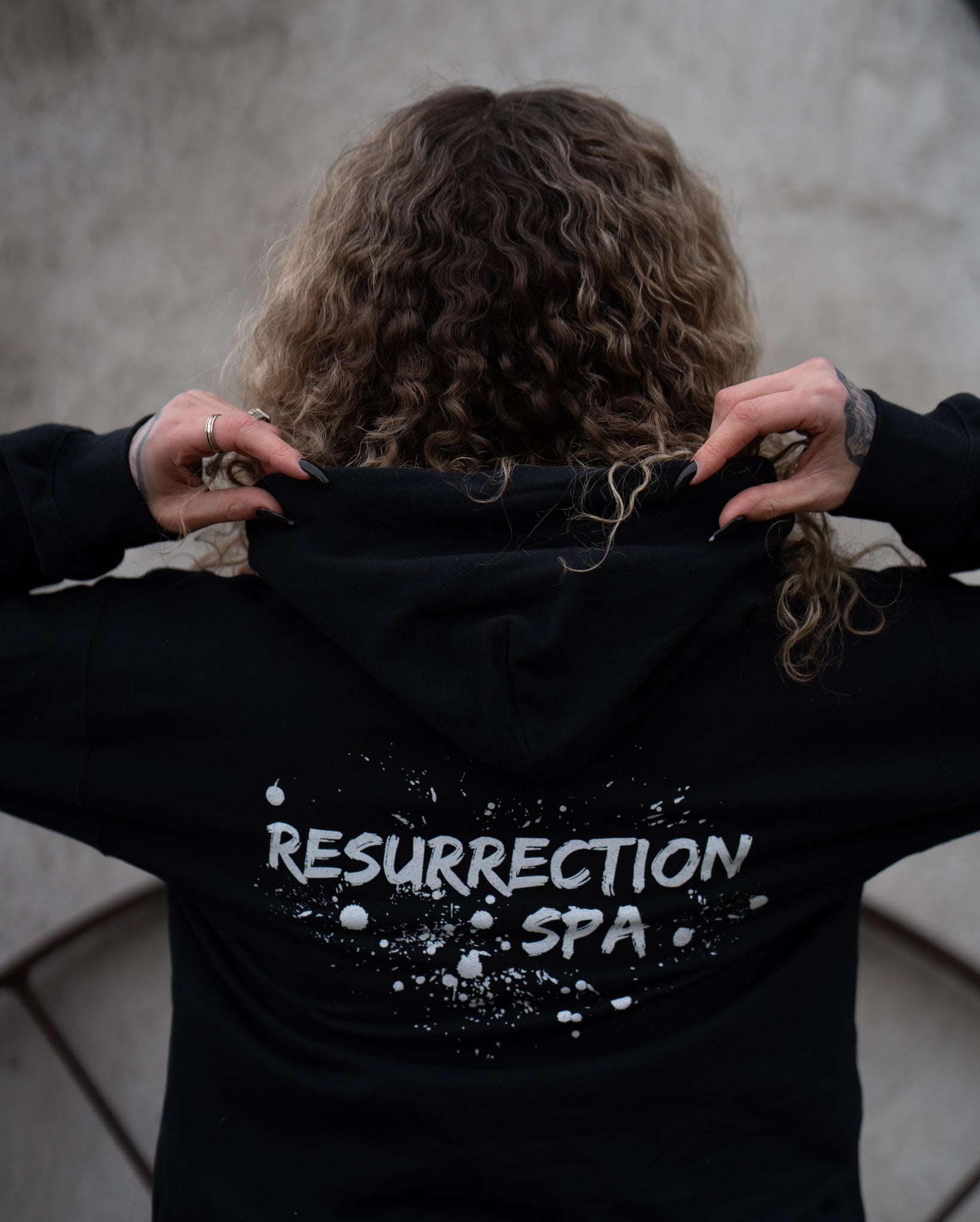 Expertly crafted, this black pullover boasts a unique and eye-catching design. The front features our iconic skull logo, while the back showcases our new and dynamic splatter logo. Stay warm and fashionable with this one-of-a-kind hoodie.